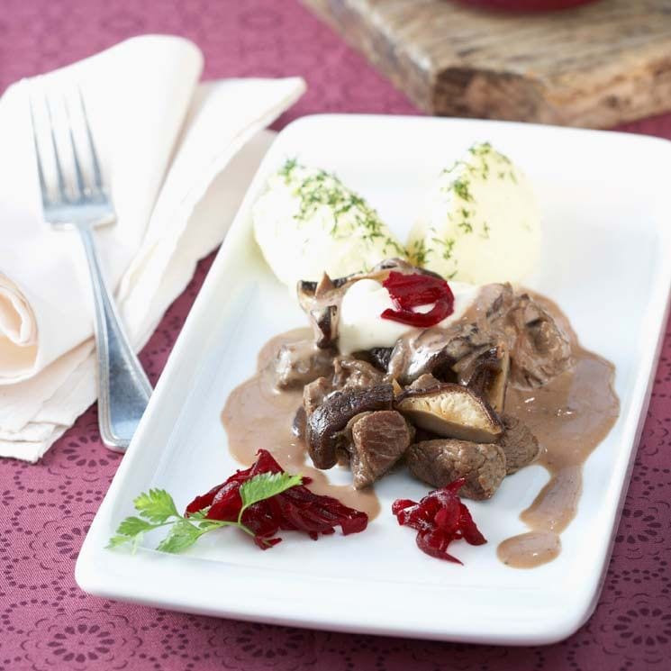 La salsa con la que se hace este plato tiene su origen en la Rusia Imperial pero su popularidad está extendida por todo el mundo. Se elabora con diferentes tipos de carne, como el solomillo de ternera y, como guarnición, nos decantaremos por un puré de patata y unos trocitos de remolacha cocida.