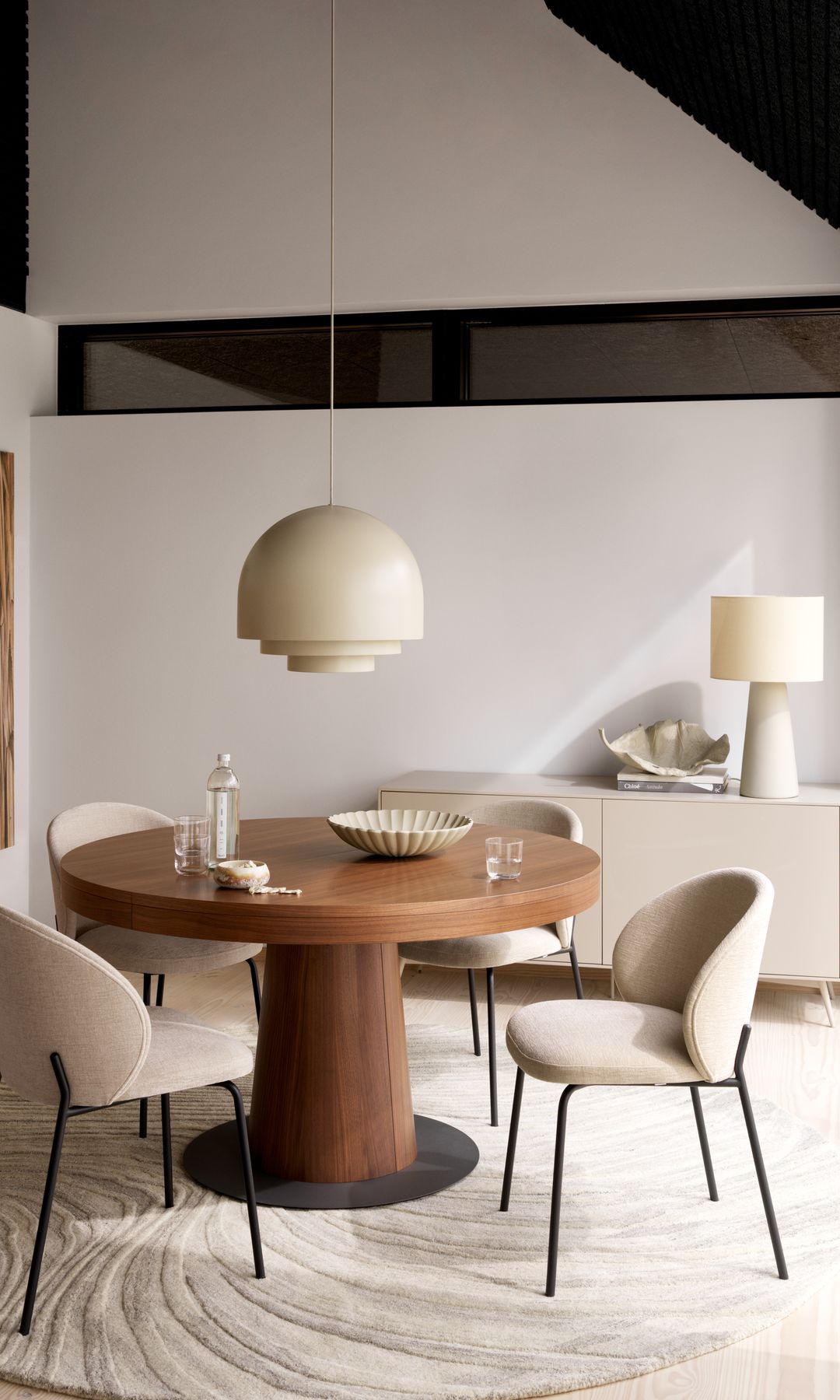 Elige el sistema de calefacción adecuado con vistas al futuro. ¿Cuáles son las regulaciones futuras sobre la elección que vamos a tomar? Hay que tener en cuenta que la tendencia es la transición hacia fuentes de energía más sostenibles, limpias y eficientes. La sostenibilidad es por tanto otra de las claves a tener en cuenta en la elección. Con ella cuidamos el medio ambiente pero hay que asegurarse de que el sistema elegido cumpla con las normativas previstas en los próximoa años. De esta manera te ahorrará posibles costes extra de adaptación. De manera general, podemos dejar pincelados los pactos en material de reducción de emisiones de CO2, por ejemplo; las regulaciones relacionadas con el Certificado de Eficiencia Energética (escoge un sistema A++ o superior) o la prohibición progresiva de combustibles fósiles (en la Unión Europea se prevé que para 2030 muchos sistemas basados en combustibles fósiles ya no estén permitidos en nuevas construcciones). Este comedor está decorado con mobiliario de la firma BoConcept.