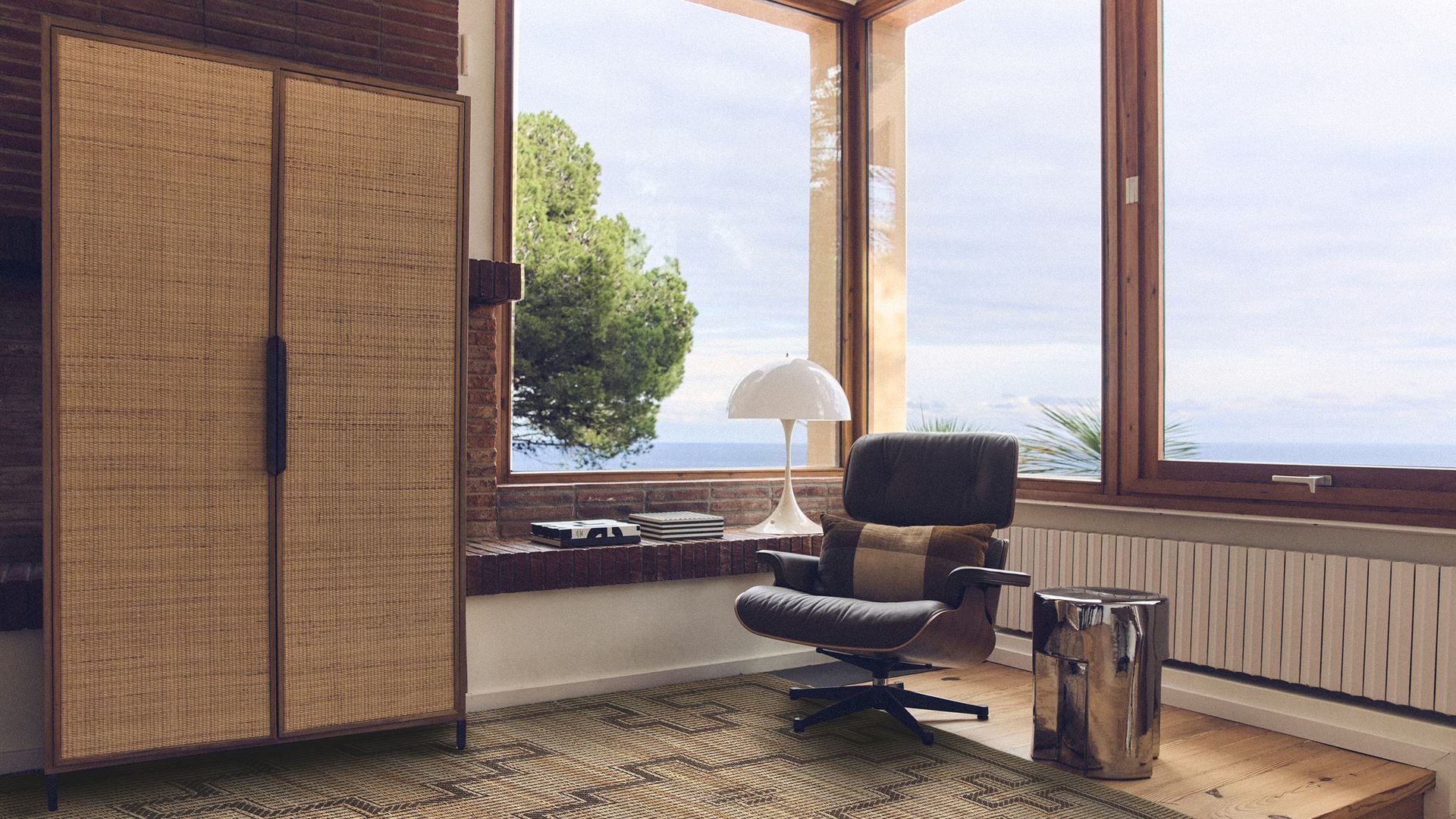Puestos a elegir, mejor que tenga una ventana cerca, que te proporcione luz natural y vistas que te ayuden a evadirte. Este rincón con piezas de HK Living tiene todo lo imprescindible para crear la atmósfera ideal, hasta una repisa extra para dejar tus cosas.