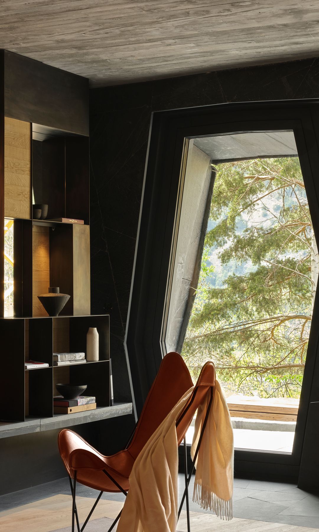 Las viviendas presentan formas irregulares y orgánicas, con techos altos, terrazas con vistas y grandes ventanales -de formas geométricas que abandonan el cuadrado y el rectángulo-, que enmarcan el paisaje. Todo ello hace que los pisos se conviertan en obras de arte habitables. El diseño aquí invita a redefinir el concepto de vivir en la montaña.