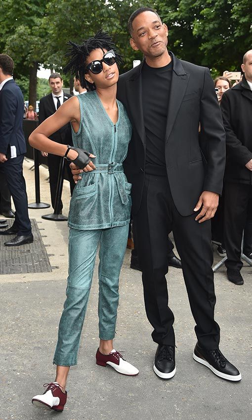 Willow Smith, la jovencísima embajadora de la firma; acudió junto a su divertido padre Will Smith. Una pareja llena de contrastes ya que el dress code clásico en negro del actor contrastaba con el arriesgado look de su hija. Un conjunto de chaleco y pantalón de efecto lurex en verde esmeralda, que combinó con unos acentuados zapatos masculinos bicolor.