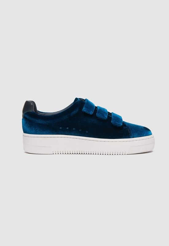 © SandroCon suela de tres centímetros, exterior de terciopelo azul y cierre de velcros, esta propuesta de Sandro (195 euros) aúna funcionalidad y diseño en una de las zapatillas más cómodas de la temporada. Una opción apta para los conjuntos de noche e incluso para un look de invitada en una boda con un dress code relajado o como segundo calzado cuando los tacones te impidan seguir la fiesta.