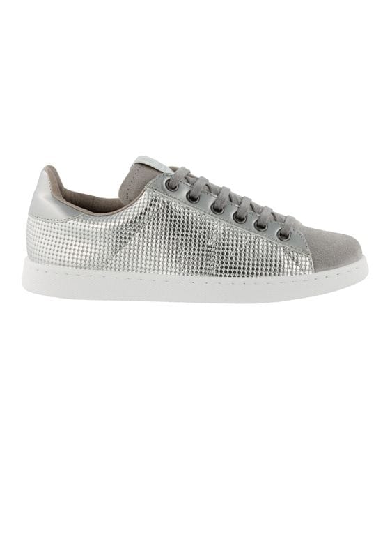 © VictoriaEstas zapatillas platedas de Victoria (59,90 euros) juegan con el contraste de acabados liso-rugoso pero mantienen las líneas clásicas de los diseños tradicionales. La versión menos extravagante de la tendencia de los metalizados, que también encaja con los estilos más formales y que se adapta casi a la totalidad del armario: de los vaqueros, a los vestidos e incluso los conjuntos dos piezas.