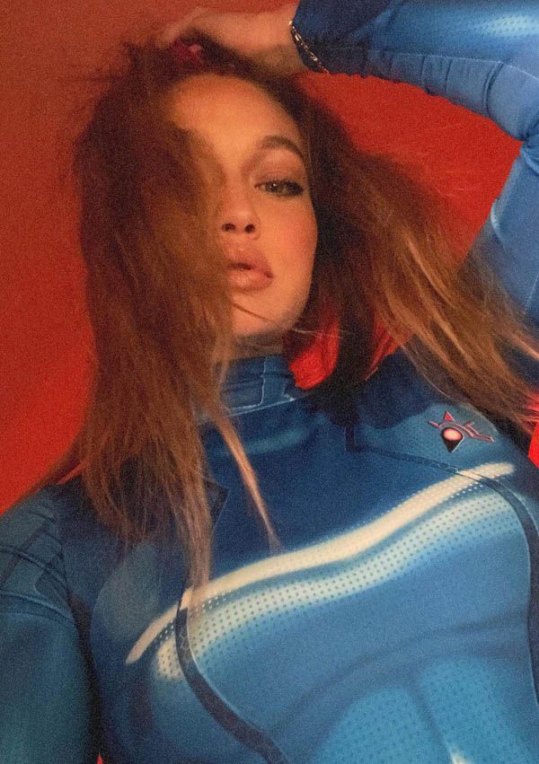 La actriz también ha querido animar a sus millones de fans con el que es el disfraz de Caperucita Roja más explosivo hasta la fecha. Así, Bella Thorne diseñaba su propia versión del mismo, con un vestido en cuero rojo de pronunciado escote, capa, ligas rojas y labios a conjunto.
