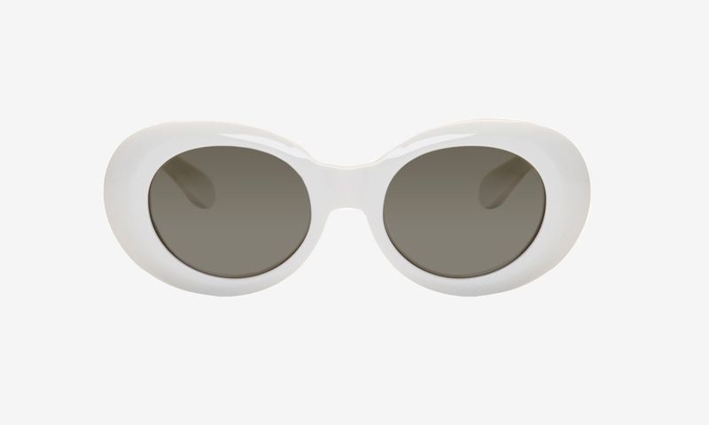 Gafas de montura blanca ovalada realizadas en acetato color blanco con cristales en negro, de Acne Studios (280 €).