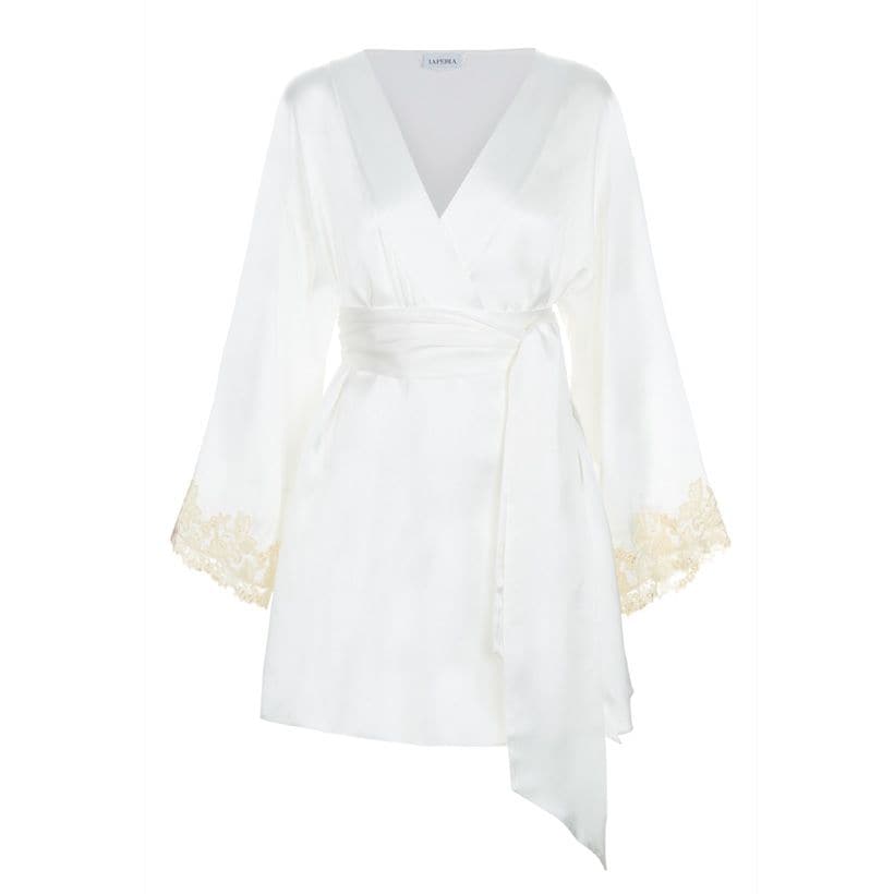 Bata corta en satén de seda adornada con motivos florales bordados, de La Perla (precio: 801 euros).