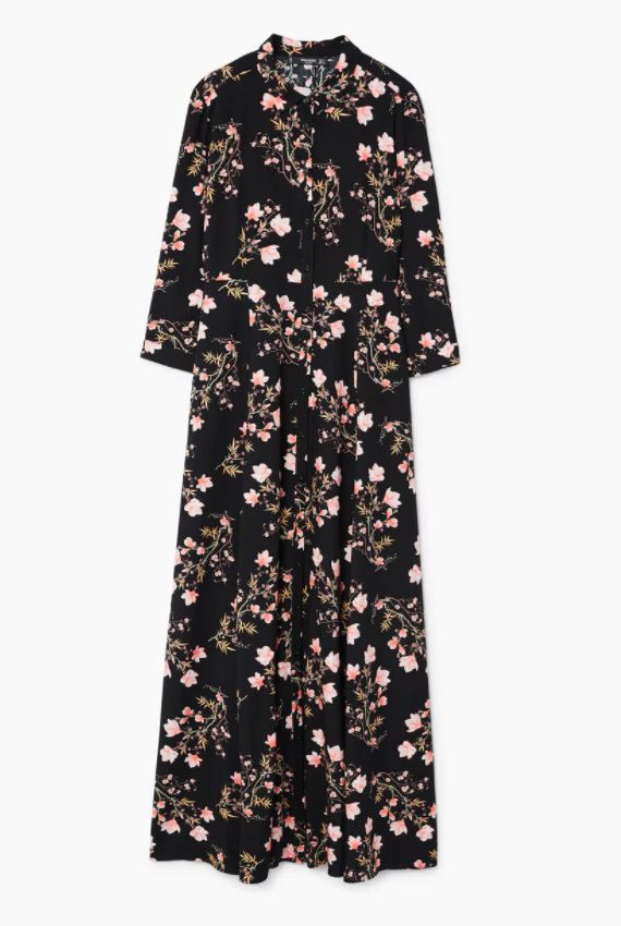 Vestido largo con flores (49,99€).