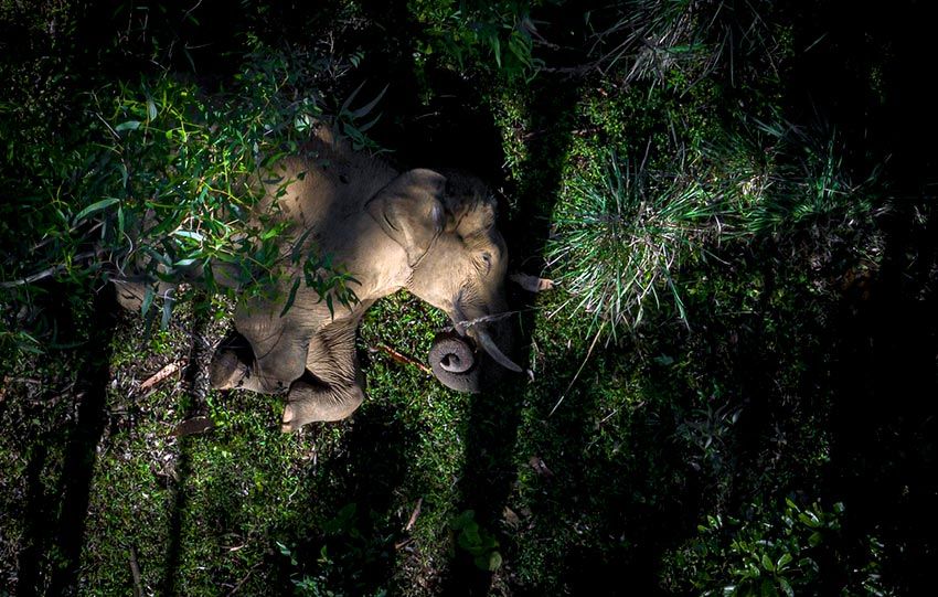 La fotografía "Sleeping giant", realizada por el fotógrafo indio Dhanu Paran, ganadora en esta categoría, inmortaliza a un elefante durmiendo y fue realizada en la Reserva de Tigres de Annamalai.