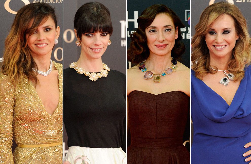 COLLARES: Esta edición muchas actrices han seguido una de las reglas de oro en moda: los accesorios son los que dan un toque especial al look. Como vemos en la imagen, Goya Toledo, Maribel Verdú, Rosana Pastor y Mar Regueras apostaron por collares XXL para combinar con sus vestidos (algunas prefirieron diseños en sintonía, y otras se arriesgaron con piezas en contraste).
