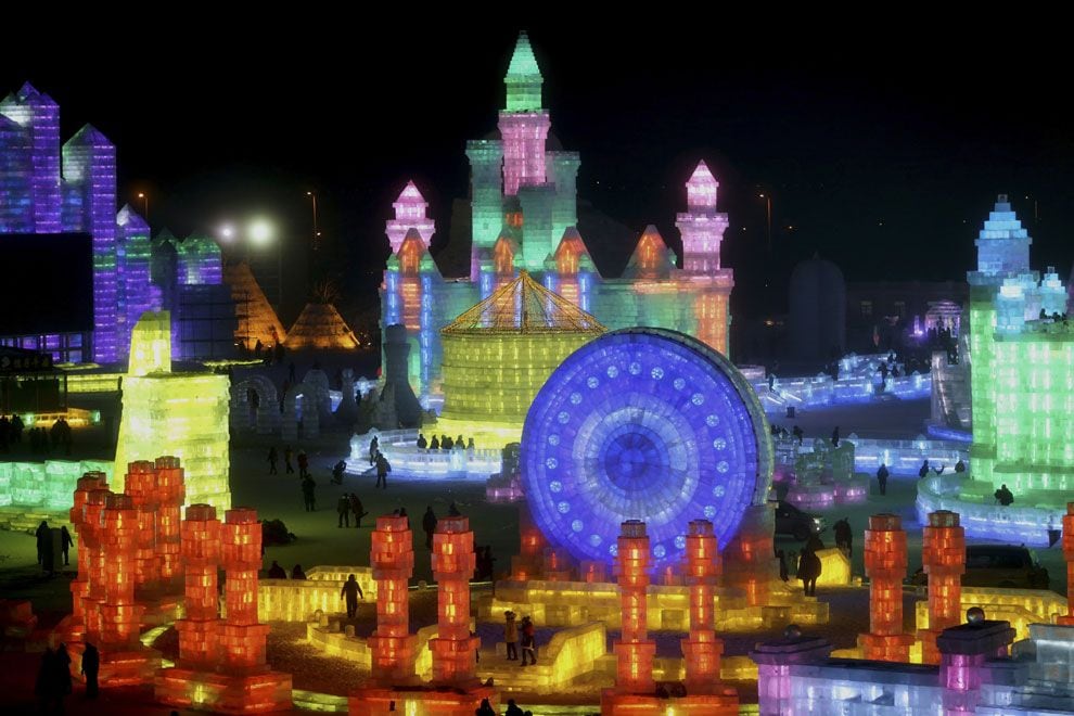 La ciudad de Harbin, capital de la provincia de Heilongjiang, al norte de China, acoge estos días un evento que supone un espectáculo para los ojos. Se trata del Festival de Esculturas de Nieve y Hielo, que se celebra cada año desde 1963 y que dura tres meses desde el 5 de enero. Este popular festival, el más grande de su tipo, atrae a artistas de todo el mundo que crean impresionantes infraestructuras de hielo iluminadas después con luces de diferente color, lo que las dota de una gran vistosidad. Son más de 2.000 esculturas que deben mantenerse a -30ºC y que ocupan una extensión de más de 600.000 metros cuadrados.