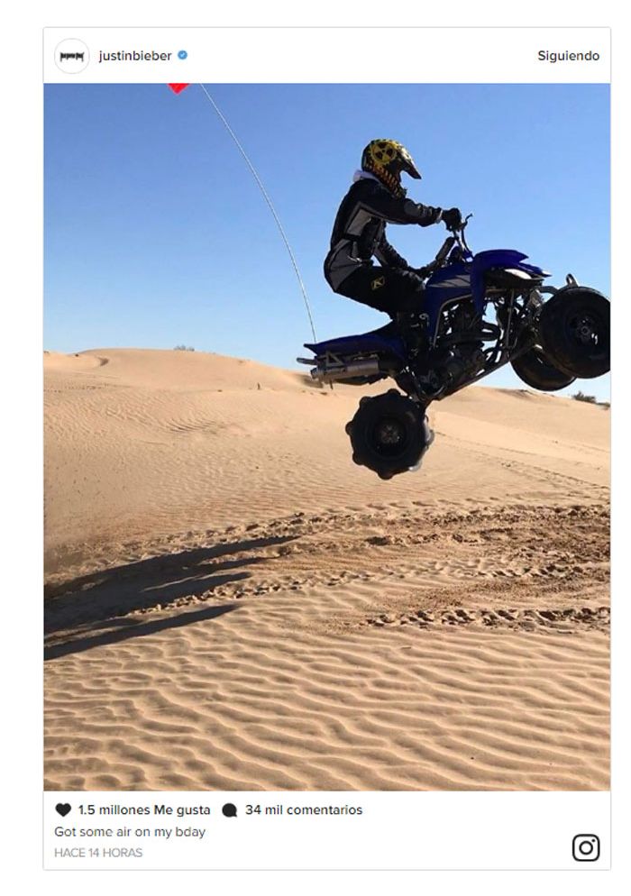 Justin Bieber se hace mayor. El cantante, al que conocimos a través de YouTube con tan solo 14 años, sopló ayer 23 velas de una forma muy diferente a como nos tiene acostumbrados. Así el artista disfrutaba de su día de una manera más tranquila: trabajando en su nuevo proyecto discográfico y subido a un quad en una pista desértica. Se aleja así de las polémicas creadas en sus últimos cumpleaños, donde las fiestas y sus líos con la prensa eran constantes, y vuelve a dar una imagen de buen chico.
