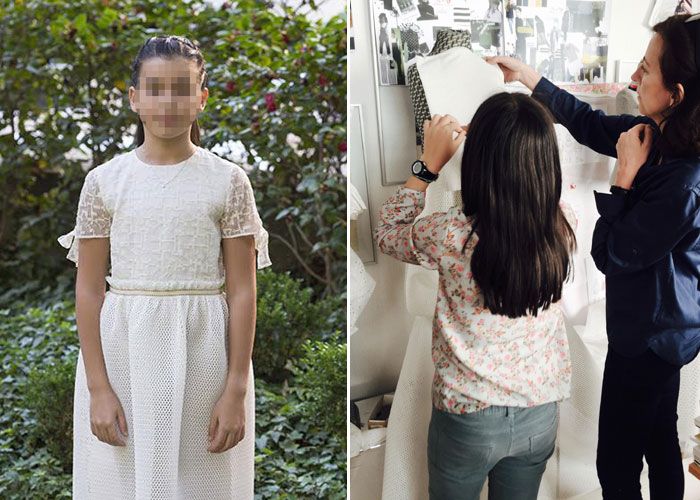 En el taller, donde Bianca acudió acompañada por su madre, la pequeña pudo dar rienda suelta a su imaginación. Desde la marca nos explican que ella misma participó en la elección de los tejidos y se encargó de crear el prototipo sobre el maniquí, colocando los alfileres y probando los detalles. Todo con una enorme ilusión y mucho cariño, dos ingredientes fundamentales para crear su vestido de comunión soñado.