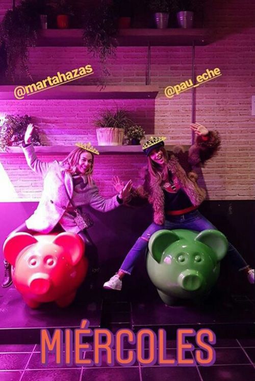 La quedada tuvo lugar en el Mercado de San Antón del madrileño barrio de Chueca. Paula, perfecta como siempre con unos jeans rotos, deportivas y jersey, se lo pasó en grande con Marta haciéndose fotos en la terraza con las divertidas esculturas del artista toledano dEmo en forma de cerdito pintadas con diversos colores.