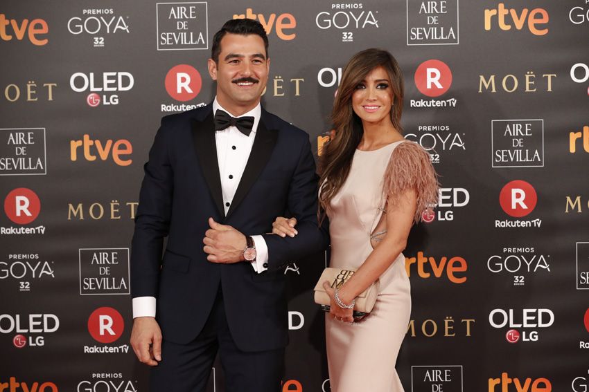 Sara Sálamo, muy sexy con un vestido negro de Georges Chakra y joyas de Yanes. La actriz acude a la gala de los Goya sin su pareja, el futbolista del Real Madrid Isco Alarcón