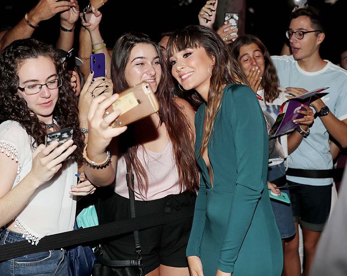 "Nunca me suelo poner escotes, entonces estoy como... ¡Dios mío de mi vida! Pero no pasa nada", confesó ante los periodistas que le preguntaron si era algo que la tenía intranquila. Y es que a pesar de que al final no hubo ningún descuido, es cierto que estuvo a punto de jugarle una mala pasada en varias ocasiones, sobre todo cuando se acercó a sus fans para hacerse fotos con ellos.