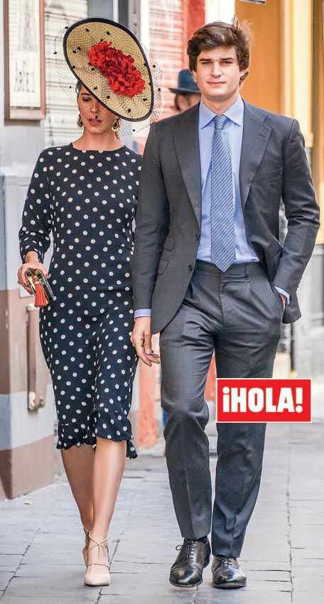 Belén Corsini tiene una belleza clásica, con un cierto aire al estilo de Sofía Palazuelo, Duquesa de Huéscar. En el enlace de Carolina Pickman y Yago Murube, hizo un guiño a la capital hispalense, la ciudad preferida de su novio, combinando un vestido de lunares, tendencia esta temporada, con un tocado de rafia, tul y flores rojas y un clutch de rayas y borlón rojo. Como se puede ver en las páginas de ¡HOLA! se mostraron muy sonrientes, demostrando que entre ambos existe una gran complicidad.