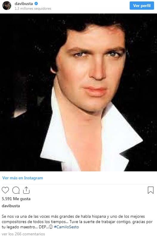 "Querida gente maravillosa, hoy estoy triste. Se nos fue Camilo Sesto, una de las voces más importantes de la música de España y Latinoamérica. Ídolo indiscutible. Gran amigo mío de toda la vida. buen viaje querido amigo, te vamos a extrañar muchísimo", escribía Raphael junto a una imagen del intérprete de Algo de mí cuando comenzó a despuntar como el fenómeno internacional en el que se convirtió. El músico Pancho Verona fue más breve pero muy conciso a la hora de expresar su desolación: "¡Camilo! Qué triste noticia...".