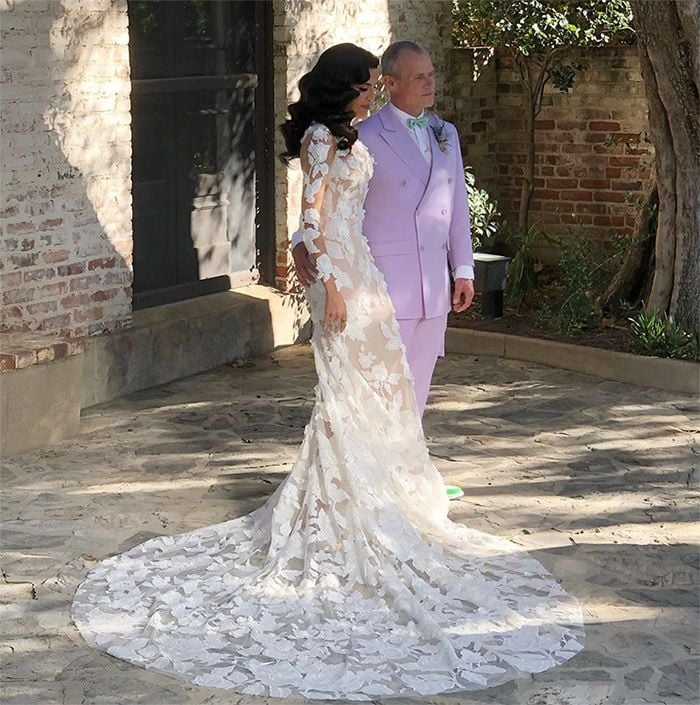 Por su parte, la novia lució un original vestido de manga larga con transparencias, bordados florales y una larga cola. Además, llevaba la melena suelta con ondas tipo Hollywood muy marcadas. "Este fin de semana me casé con mi mejor amigo. Seguramente, ha sido mi mejor colaboración hasta la fecha", bromeó Melody, añadiendo: "Eres todo mi corazón". La diseñadora de joyas demostró su pasión por las flores con un espectacular ramo de orquídeas blancas y el llamativo adorno que llevaba en el pelo, donde iba sujeto el velo.