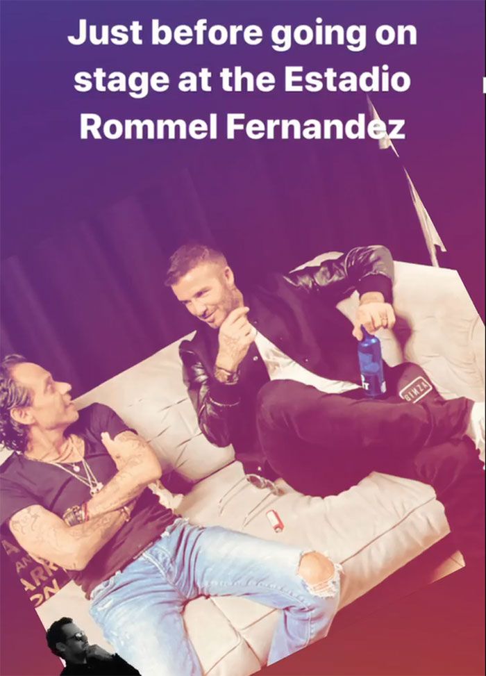 "Como representante de un deporte que me fascina... Señoras y señores, que se oiga para el señor David Beckham, que está por primera vez en Panamá", decía Marc, quien recibía a Beckham en el escenario con un cariñoso abrazo. "Mirad quién apareció en mis show en Panamá", decía poco después el artista en una imagen junto a Beckham, quien también ha compartido varios momentos del concierto, en el que, a juzgar por sus palabras, se lo pasó en grande. "Tuve suerte de ver al hombre de mi play list anoche en Panamá. Gracias por hacer lo que haces, el placer fue increíble, gracias ", aseguraba el marido de Victoria Beckham.