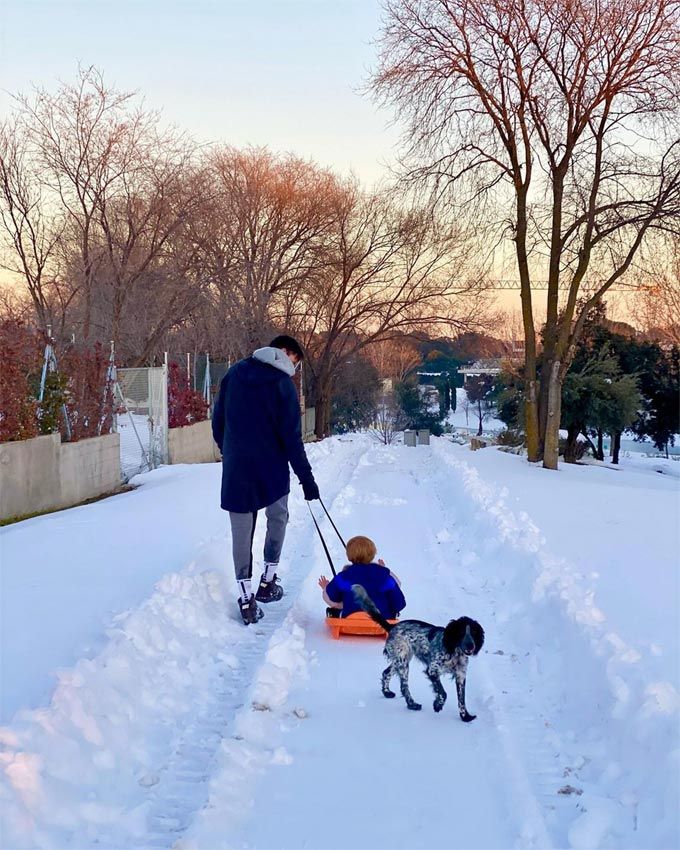 Madrid sigue cubierta por un manto blanco de nieve que se ha convertido en el patio de juegos perfecto para los peques de la casa. Helen Lindes que, como se puede ver en las páginas de la revista ¡HOLA! se quedó aislada en su casa junto a su familia durante la intensa nevada, ha establecido una divertida rutina estos días que ha encantado a Alan y Aura. La top ha compartido en qué consiste este horario del que alguno ya habrá tomado nota. “¿Qué andamos haciendo estos días? Nuevo ejercicio: carreras de trineo” así comienza. Para ilustrar precisamente este nuevo medio de transporte enseña cómo su marido Rudy Fernández tira de Alan, de cuatro años, por un camino completamente blanco.