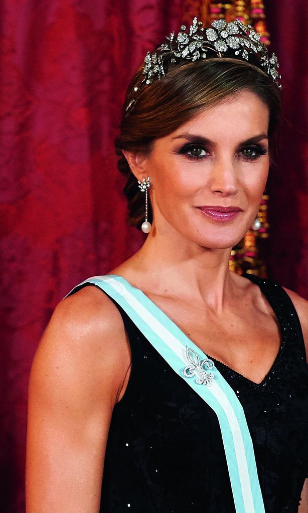 La tiara Floral es la favorita de la Reina, la que más ha usado desde su llegada a palacio y arrastra una curiosa historia. El rey Alfonso XII la encargó para su prometida, la archiduquesa María Cristina de Austria (1879), a la joyería inglesa J.P.Colins -otras fuentes apuntan a Mellerio- y, aunque durante décadas estuvo perdida, a diferencia de otras joyas de la dinastía, esta pieza sí “encontró” el camino para regresar a casa en la mejor de las oportunidades.