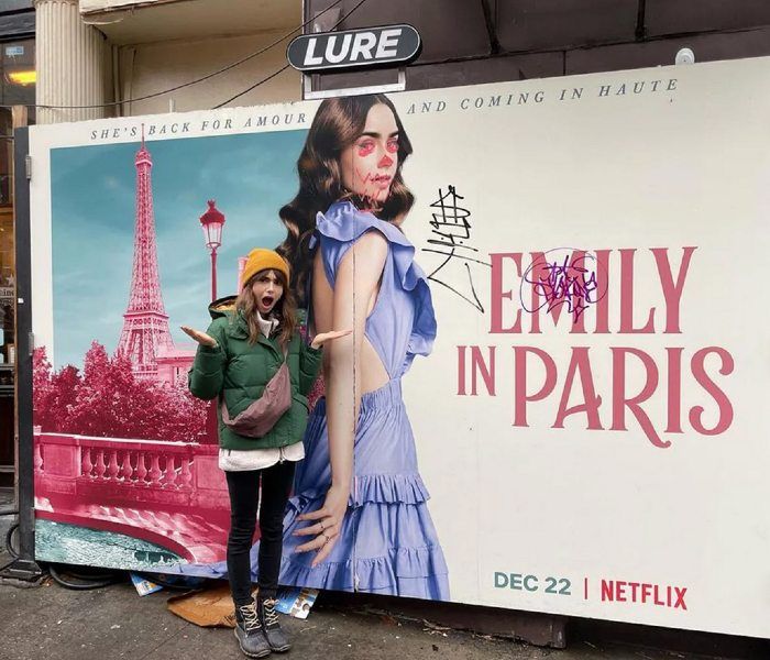 "No esperaba que de repente fuera algo que molestara a la gente. También nos burlamos de Estados Unidos. Emily está dispuesta a mencionar cosas sobre su lugar de origen y bromean tanto sobre ella como de sus compañeros de trabajo o la forma de vida de allí. Me equivoqué, lo siento mucho", explicó Collins en Glamour. Además, la actriz se encontró hace unas semanas con un cartel de promoción de la ficción en el que habían pintado su cara con un grafiti, un momento que aprovechó también con mucho humor y en el que su marido, el director y guionista Charlie McDowell, también participó. "No puedo decir que me encanta el nuevo look. Pero aprobado por el esfuerzo", publicó la intérprete junto a un vídeo en el que su esposo sale corriendo al ver el póster vandalizado.