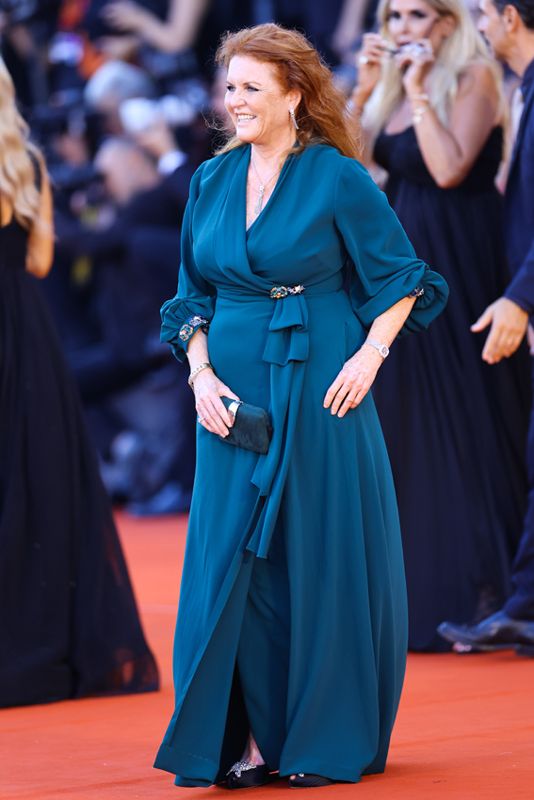 Sarah Ferguson, duquesa de York, ha posado muy sonriente ante los flashes a su llegada a La Mostra. Para la cita, ha apostado por un vestido verde con escote cruzado y un broche de piedras bajo el pecho, a juego con otro que adornaba sus mangas. Natural y espontánea, sin dejar de saludar y hacer gestos, la que fue íntima amiga y confesora de la recordada Diana de Gales se ha fotografiado con la productora cinematográfica Tiziana Rocca, el exdeportista Demetrio Albertini o el director general de Cartier en el sudeste de Europa. Francois-Marc Sastre.