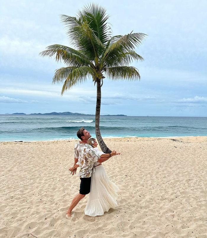 Y lo ha hecho para despedirse de las idílicas vacaciones familiares que han pasado en las islas Fiyi, concretamente en Tavarua. Elsa, que ha posado así de divertida y enamorada con Chris, lució una bonita falda de vuelo y un top para disfrutar de la última velada de sus vacaciones. La protagonista de Interceptor completó su look hippie poniéndose una flor blanca en el pelo. Descalzos, bailando y celebrando su amor, esta imagen no hace más que demostrar que en estos doce años su matrimonio se ha hecho aún más fuerte y siguen tan felices como el primer día.