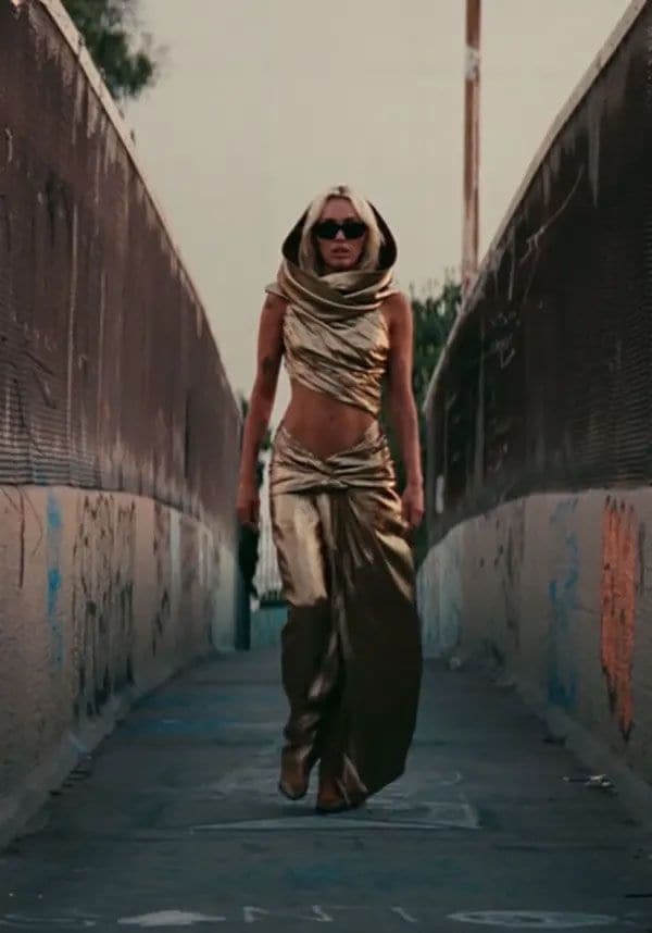 Pero el empoderamiento de Miley no solo lo deja patente con su letra, sino también con su estilo, pues para el videoclipla cantante luce un vestidazo dorado metalizado con capucha y aberturas en el costado, que si bien recuerda al traje nupcial del personaje de Serena Van der Woodsen de Gossip Girl, forma parte de la historia del gran e icónico genio de la moda Yves Saint Laurent, concretamente a la colección otoño-invierno 1992.