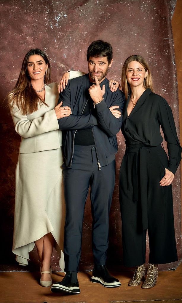 Arriba, Olivia Molina junto a Alfonso Bassave y Manuela Velasco, con joyas UNOde50. Sobre estas líneas, una divertida Arantxa del Sol. A la derecha, la actriz Itziar Castro.