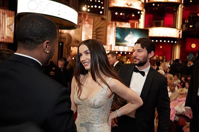 Ana de Armas llegó pletórica a la gala, era su primera vez en la ceremonia de los Oscar y quiso disfrutarla al máximo. Espectacular con un vestido de corte sirena de Louis Vuitton rematado con una falda de volantes como claro guiño español, la querida intérprete que dio vida a Marilyn Monroe desfiló por la alfombra color champán, y aunque en un principio todo parecía indicar que había ido sola, descubrimos que no fue así. Después de posar ante los fotógrafos, su novio, Paul Boukadakis, la esperaba en el patio de butacas del teatro.