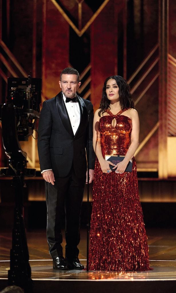 Margot Robbie no pasó por la alfombra, pero brilló en el escenario con un diseño de lentejuelas, al igual que Salma Hayek, que presentó un premio con Antonio Banderas, su amigo desde hace 30 años