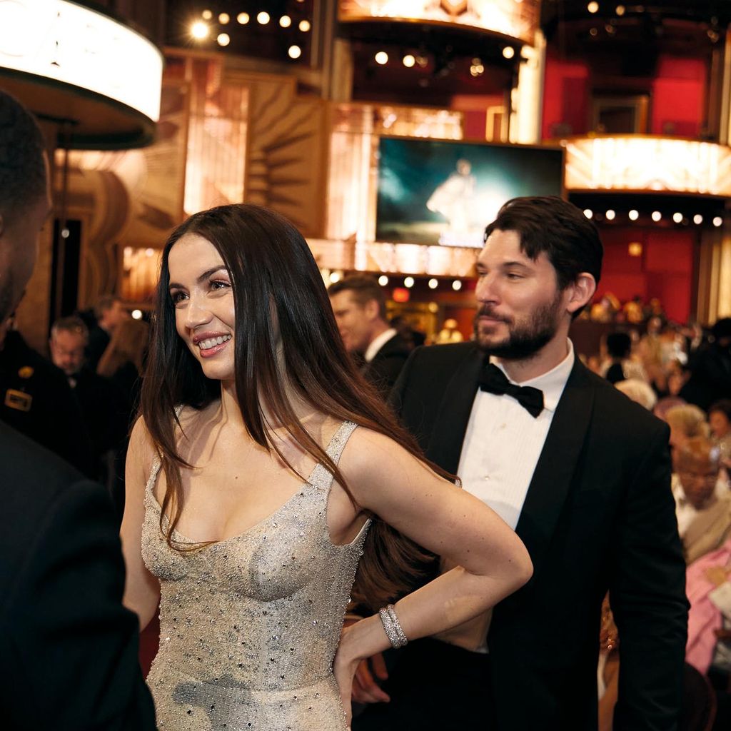 Ana de Armas vino a Hollywood, venció suspicacias y convenció a los más exigentes. Pese a quien pese, su interpretación de Marilyn Monroe en Blonde y su fabulosa transformación en la rubia más adorada del planeta le ha valido su lugar dorado en la meca del cine. Ya casi nadie se acuerda de sus meses de amor con Ben Affleck, y sí de su paso bamboleante, dramático y tierno por la pantalla grande. Por eso, nos ha regalado estilo mayúsculo en las últimas semanas. En una fiesta pre-Oscar, apareció con un sensual naked dress de David Koma, y en la noche de los Oscar recurre, como ha hecho a lo largo de toda esta temporada de premios, a un fabuloso diseño de Louis Vuitton de rompe y rasga, que requirió un trabajo de confección de más de mil horas. Gracias al corte sirena del vestido —y al maquillaje en tonos terracota—, Ana de Armas eleva el glamour de la velada. Y hace un guiño a España, el país de sus abuelos y al que ella llegó con 18 años —y dejó para empezar de cero en Hollywood—, con la falda de volantes flamencos. Como en el resto de alfombras —esas sí, rojas—, posa sola, pero en la gala, sentado a su lado, Paul Boukadakis, vicepresidente de Tinder, no suelta su mano, camino de celebrar dos años desde que los presentó un amigo común (y después, ya terminada la ceremonia, sí posan juntos en la fiesta posterior).