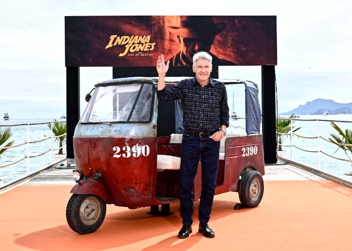 La presentación del clásico cinematográfico en la tercera jornada del festival ha dejado encantadoras instantáneas de Harrison, que rodó su papel con 79 años, y del resto de sus compañeros posando tras el photocall promocional y junto a un tuk-tuk de estilo vintage y color rojo sobre el que aparece grabado en blanco el número 2390. Se trata de un vehículo que jugará un importante papel en esta entrega, que está ambientada en 1969. ¡Empieza la cuenta atrás para el gran estreno!