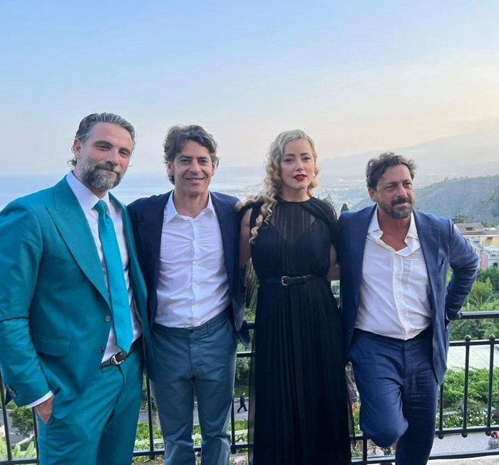 Amber se mostró especialmente divertida con sus compañeros de reparto Luca Calvani, Eduardo Noriega y Yari Gugliucci, así como con el director del filme, Conor Allyn, junto a los que se fotografió, brindó e incluso disfrutó de la noche siciliana en uno de los locales de moda de la ciudad.