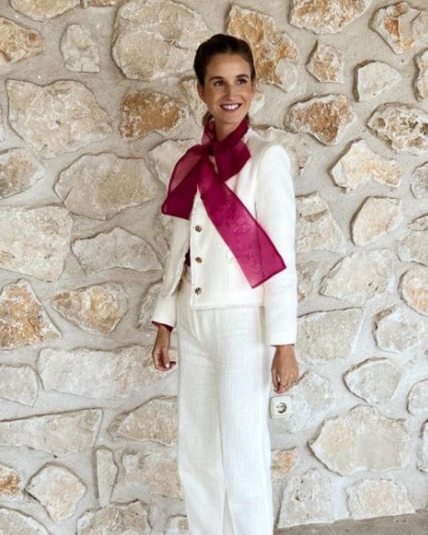 A pesar de que el tiempo no haya acompañado demasiado, estos días prácticamente toda la Península Ibérica ha estado en alerta por fuertes lluvias y vientos, las hermanas Corsini se han decantado por tres alegres estilismos de color blanco, que, como no podría ser de otra manera, son de Bimani. Hay que recordar que en la boda de Laura con Javier Ibáñez, el 24 de mayo de 2021 en Comillas (Cantabria), la emprendedora fue la encargada de diseñar 70 vestidos para sus invitadas más cercanas. Por lo que parece que ya es tradición que las fechas más señaladas de su calendario tengan el sello de su empresa.