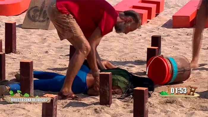 No pasaron ni dos días cuando otra de la aspirantes ha vuelto a provocar el miedo en directo. Durante una de las pruebas, que consistía en hacer un recorrido con grandes cubos de agua, a través de pasarelas y tocones clavados en la arena, para llenar dos cubas lo antes posible, Aurah Ruiz se caía. Entre gritos de dolor se tocaba el abdomen, mientras Pedro García Aguado corría a ayudarla. Tuvo que intervenir el equipo médico, que en seguida se la llevó de la playa y la trasladó al hospital como luego comentó Jorge Javier Vázquez.