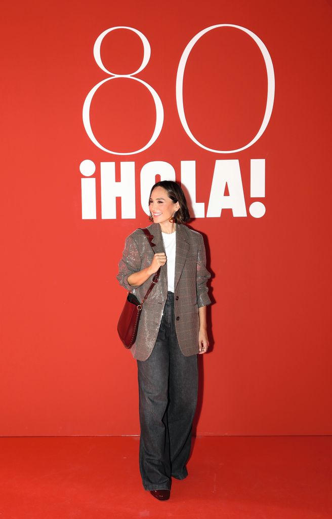 Con un conjunto cómodo y chic, pantalones de pata ancha combinados con una americana en tono gris brillante, Tamara disfrutó de esta exposición en la que se pueden ver algunas de las portadas que ha protagonizado junto a su madre, Isabel Preysler, y sus hermanas, Ana y Chábeli. Se detuvo también en la pantalla virtual donde se puede comprobar cómo se vería en el cuello del visitante el collar "80 años de amor", una joya inigualable y única, creada en exclusiva por José Luis Joyerías en especial para la Casa ¡HOLA!