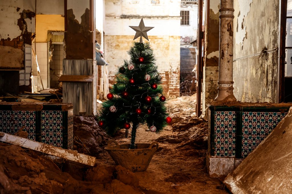 Y entre tanto caos y desolación, siempre hay un hueco para la esperanza, como demuestra este árbol de Navidad colocado dentro de un barreño de lodo y que adorna una de las calles del municipio de Paiporta, considerado la zona 0 de esta DANA.