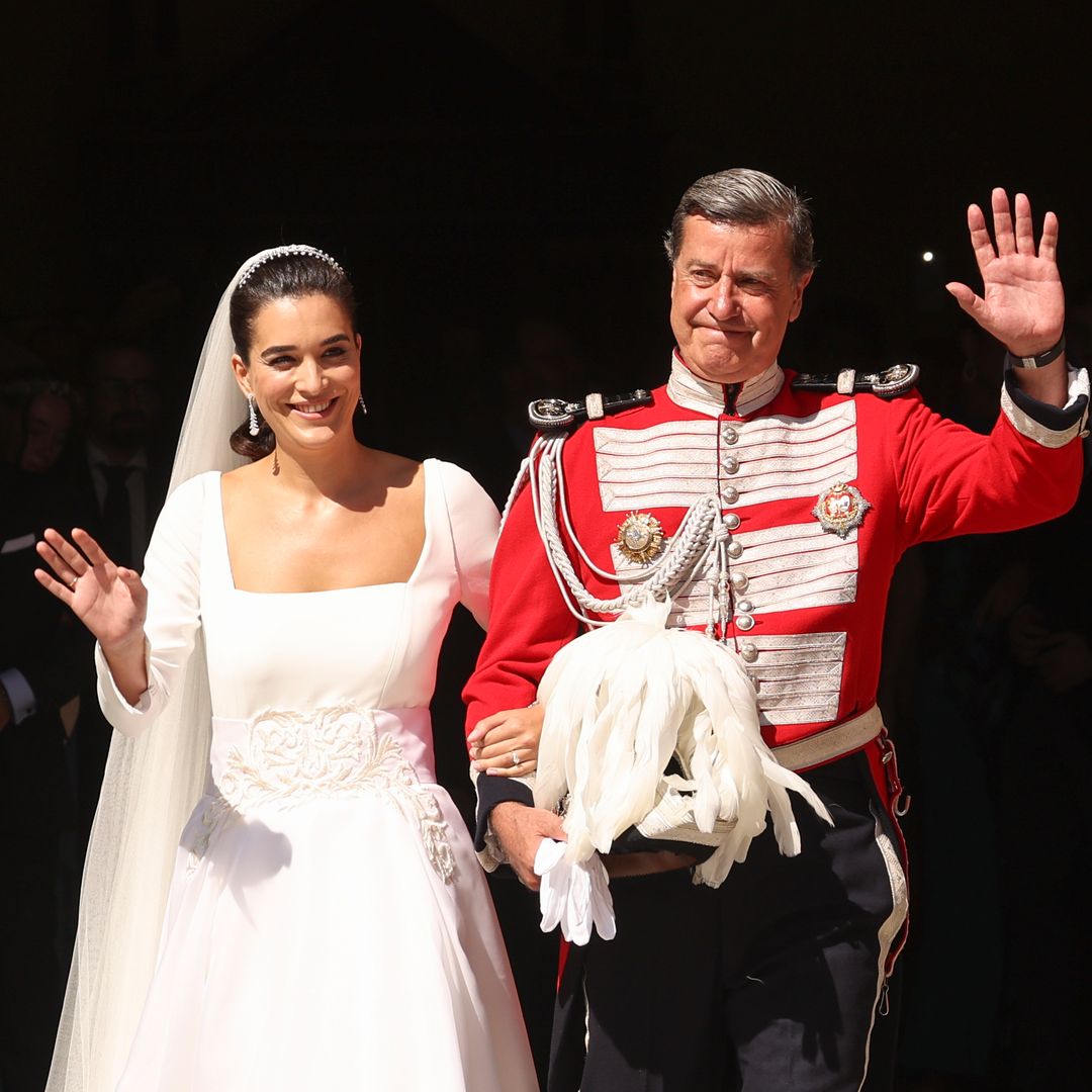 Si cambiamos la perspectiva, vemos a Cayetano Martínez de Irujo, mirando al frente, con los ojos vidriosos, al contemplar por primera vez la imagen de Bárbara vestida de novia. Bajo la atenta mirada de su hija, la emoción del conde de Salvatierra inundó el templo y marcó el comienzo de una romántica y emotiva ceremonia en la que sonó el himno de España.