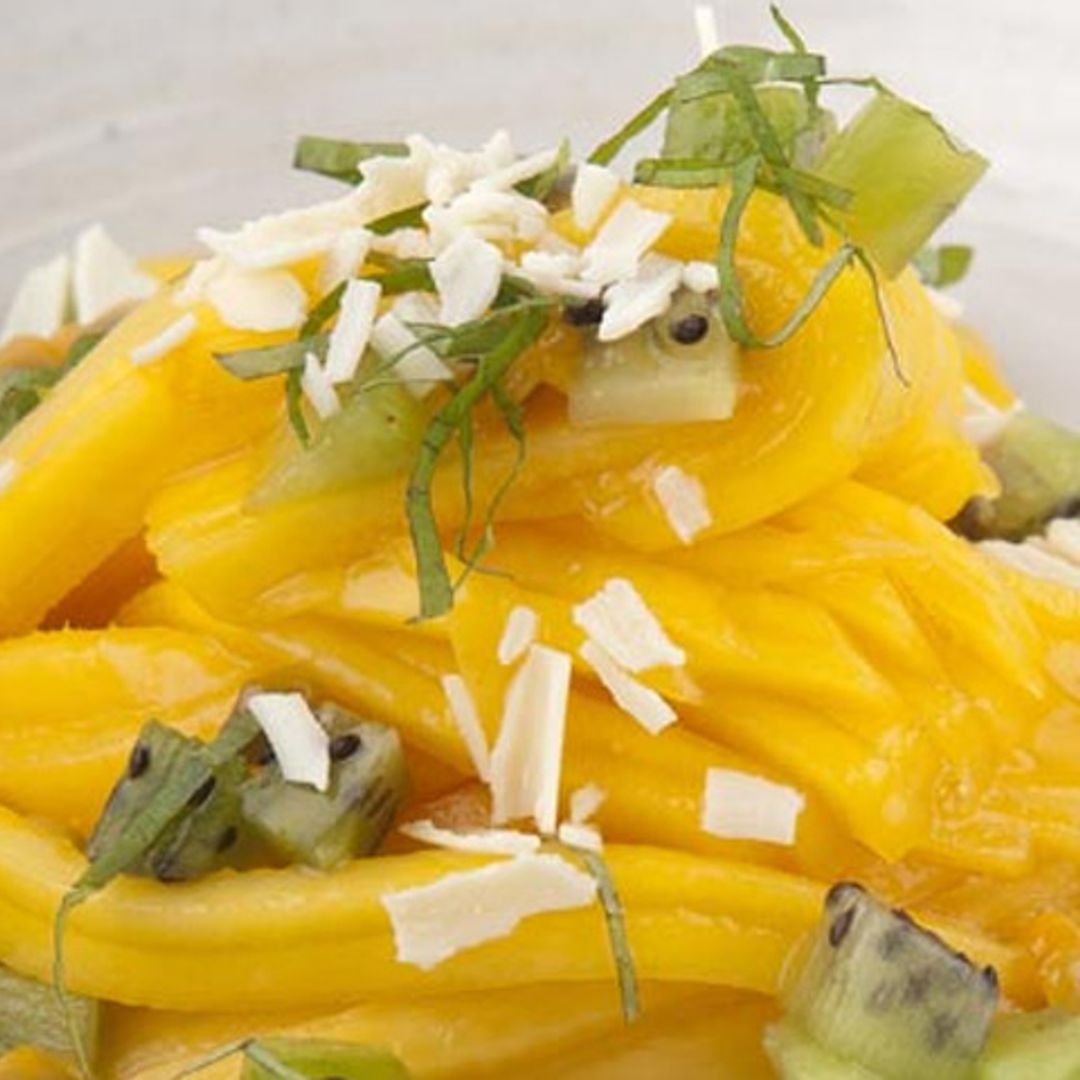 Peras en compota de uvas y arándanos Filete de raya con calabacines Raviolis de carrillera de cerdo braseada al vino tinto sobre fondue de tomate con albahaca