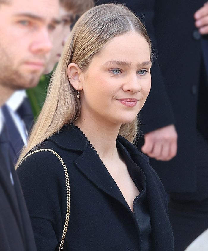 Al igual que el resto de la familia, la más pequeña de los Urdangarin-Borbón vistió de riguroso luto para dar el último adiós al hermano de su abuela, la reina Sofía. Irene se decantó por un vestido con escote en 'V' con puntilla que combinó con un chaquetón abotonado, medias oscuras y zapatos de charol con tacón. Además, tal y como puede verse en las imágenes, llevaba un pequeño bolsito negro con cadena dorada, a juego con sus joyas.