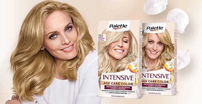 • Palette Intesive Age Care Color: ¿Estás buscando recuperar la vitalidad de tu melena? La coloración Palette Intesive Age Care Color es un tratamiento permanente pensado especialmente para cabellos maduros con extra de cuidado y un 100% de cobertura de canas. Tras su aplicación, obtienes un color duradero y brillante. Está disponible en 5 tonos rejuvenecedores y, gracias a su fórmula elixir de biotina y aceite natural de albaricoque, consigue un cuidado nutritivo superior.