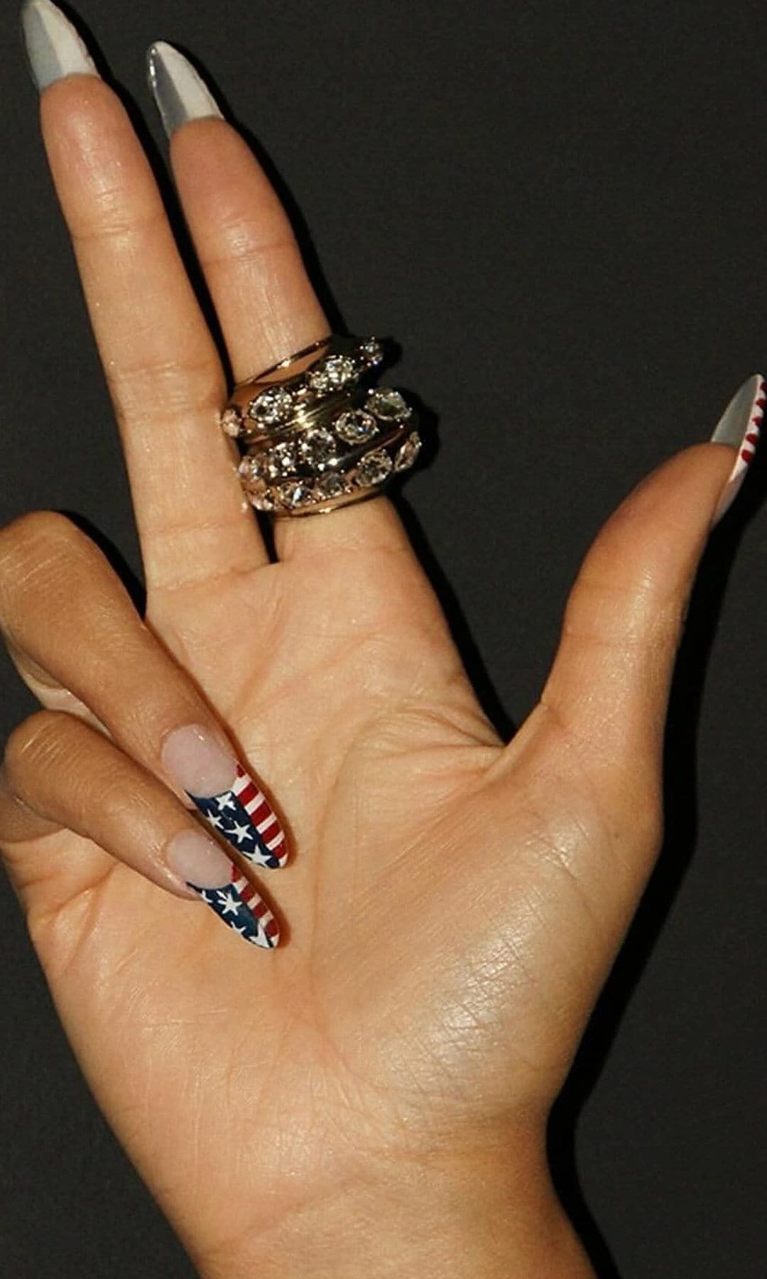 Beyoncé ha llevado la tendencia de las uñas vaqueras a otro nivel con su icónica manicura inspirada en la bandera estadounidense. La cantante ha lucido un diseño audaz y llamativo que fusiona a la perfección los símbolos patrios con la estética del Viejo Oeste. La manicura de Beyoncé no solo es un homenaje a sus raíces, sino también una declaración de estilo que ha inspirado a millones de fans en todo el mundo.