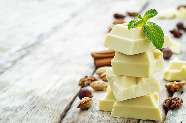 -Divide el chocolate blanco para postres en 100 gramos para fundir y otros 100 gramos troceados para añadir enteros al coulant antes de meter en el horno.