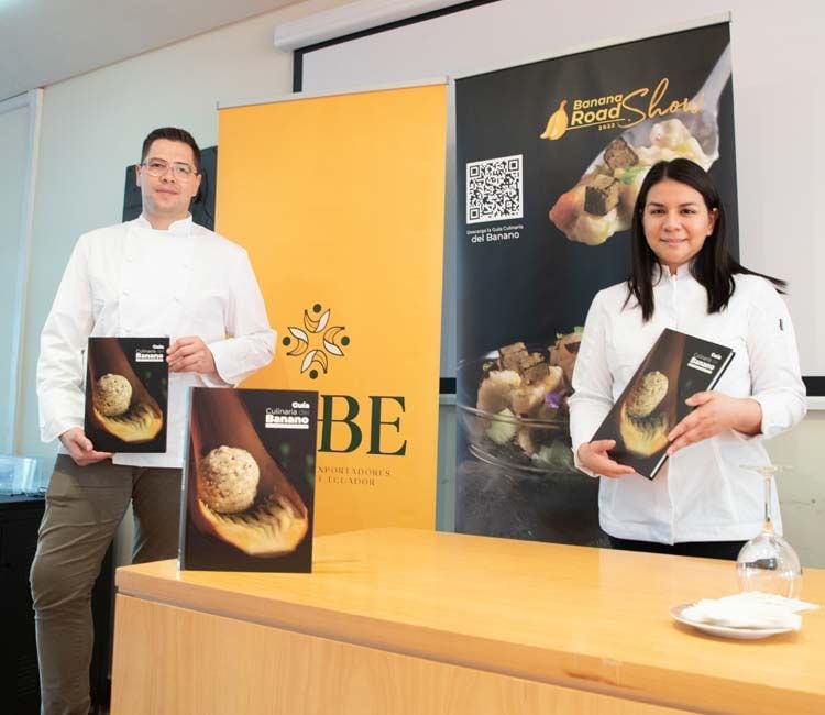 De Ecuador es de donde salen al resto del mundo la mayoría de bananos, un ingrediente muy presente en su cocina y esencial para su economía. Por ello quieren dar a conocer al mundo esa versatilidad a través de su Guía Culinaria, editada por la Asociación de Exportadores de Banano del Ecuador (AEBE) en colaboración con la Escuela de los Chefs de Guayaquil. La presentaron en Madrid, de la mano de los cocineros Daniela Valverde y Andrés Granda, coincidiendo con la feria Fruit Attraction, quienes también realizaron una muestra de la cocina con banano.