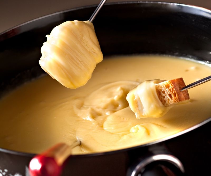 La fondue de queso tiene su origen en las altas montañas de Suiza