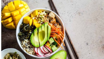 Por lo general, un poke bowl incluye una base de arroz, quinoa o fideos, proteína de pescado o vegetal, verduras, aguacate, edamame, algún aderezo y varios toppings. Y, dependiendo de lo que lleve, sus ingredientes nos aportan ácidos grasos omega 3, proteínas, carbohidratos, vitaminas A,C,D,E, B1 y B2, minerales como magnesio, potasio, calcio, fósforo y antioxidantes, etc. Tiene una gran capacidad saciante y por eso es perfecto como plato único.