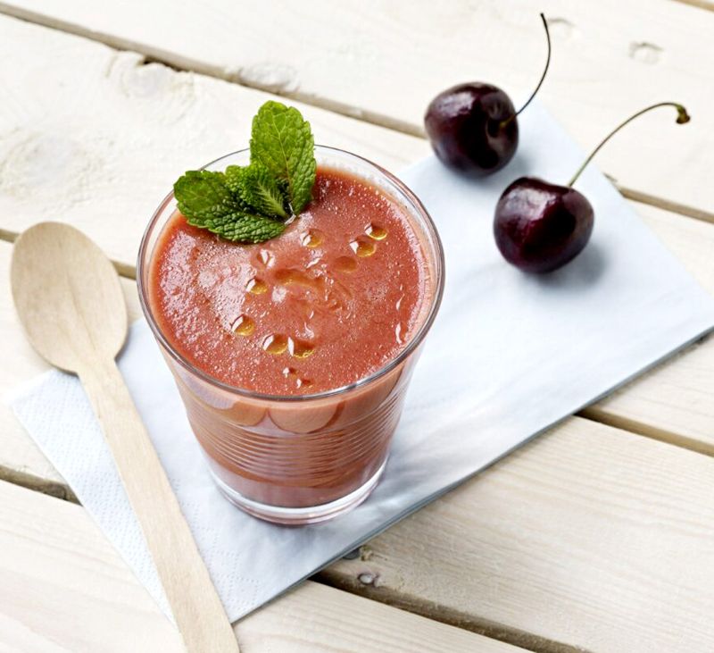 - Servir el gazpacho bien frío, con unas hojitas de hierbabuena y un chorrito de aceite. También se puede decorar con pequeños trocitos de cereza.