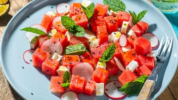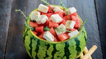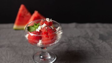 Su toque saladito hace una magnífica combinación con el dulzor de la sandía. Un tándem del que podemos disfrutar en distintas recetas: una de las más comunes son las ensaladas, pero también puede estar presente en aperitivos, sopas frías, postres….